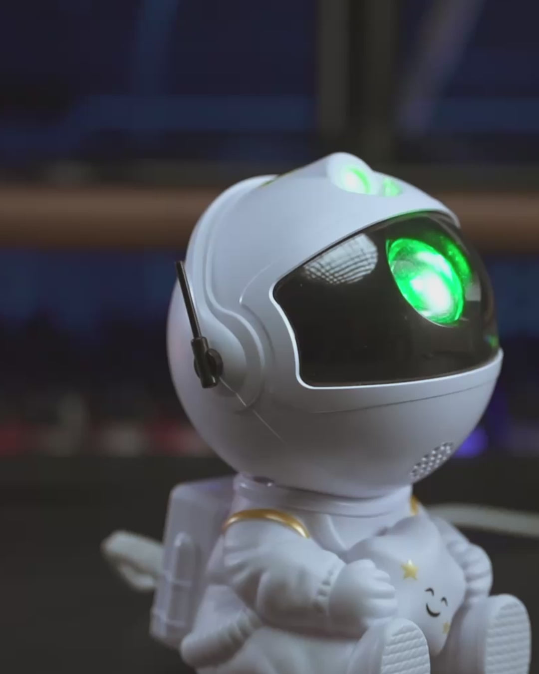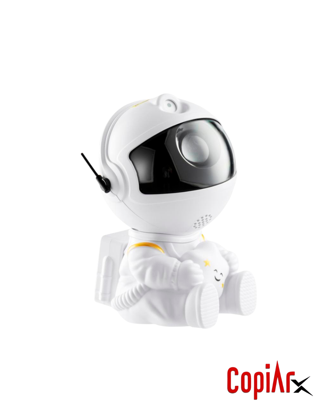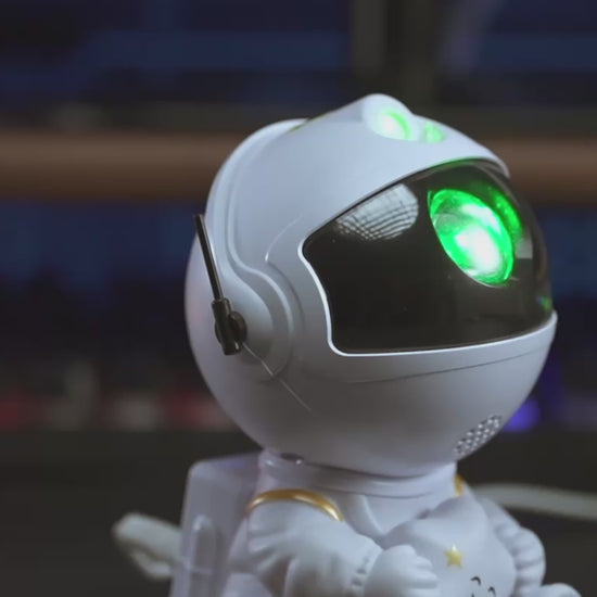 Figura de astronauta con cabezal ajustable 360°, permitiendo orientar la proyección libremente.