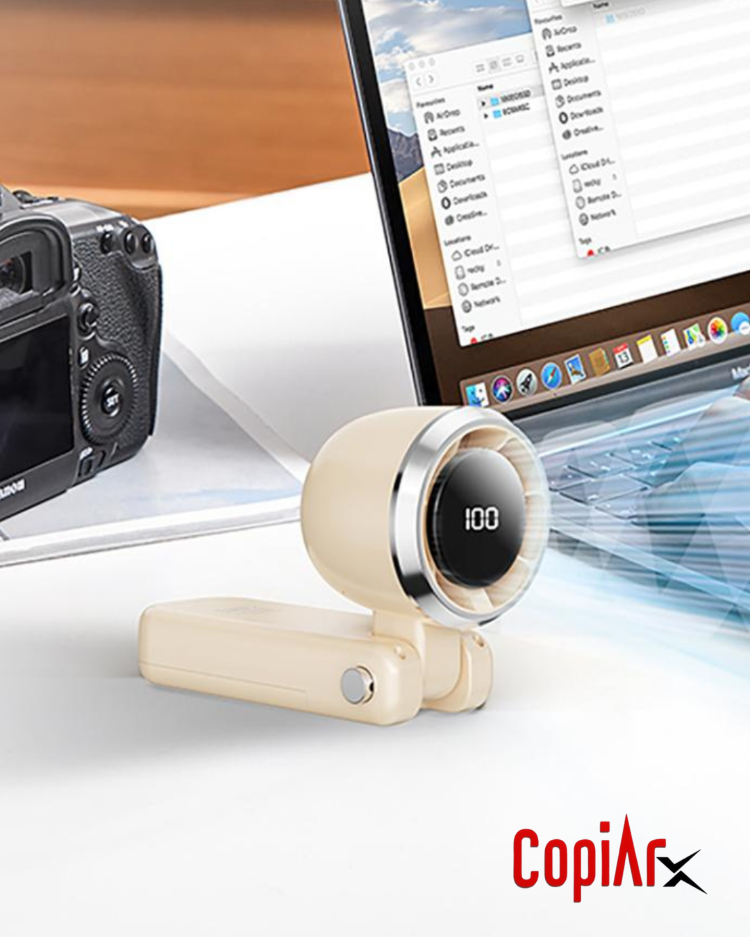 Ventilador Portátil CopiarX XO-MF102, una solución tecnológica diseñada para ofrecer frescura inmediata en cualquier situación. Su diseño 2 en 1 —portátil o de escritorio— y su ángulo regulable de 180° lo convierten en un accesorio versátil, moderno y perfecto para acompañarte en tu rutina diaria.